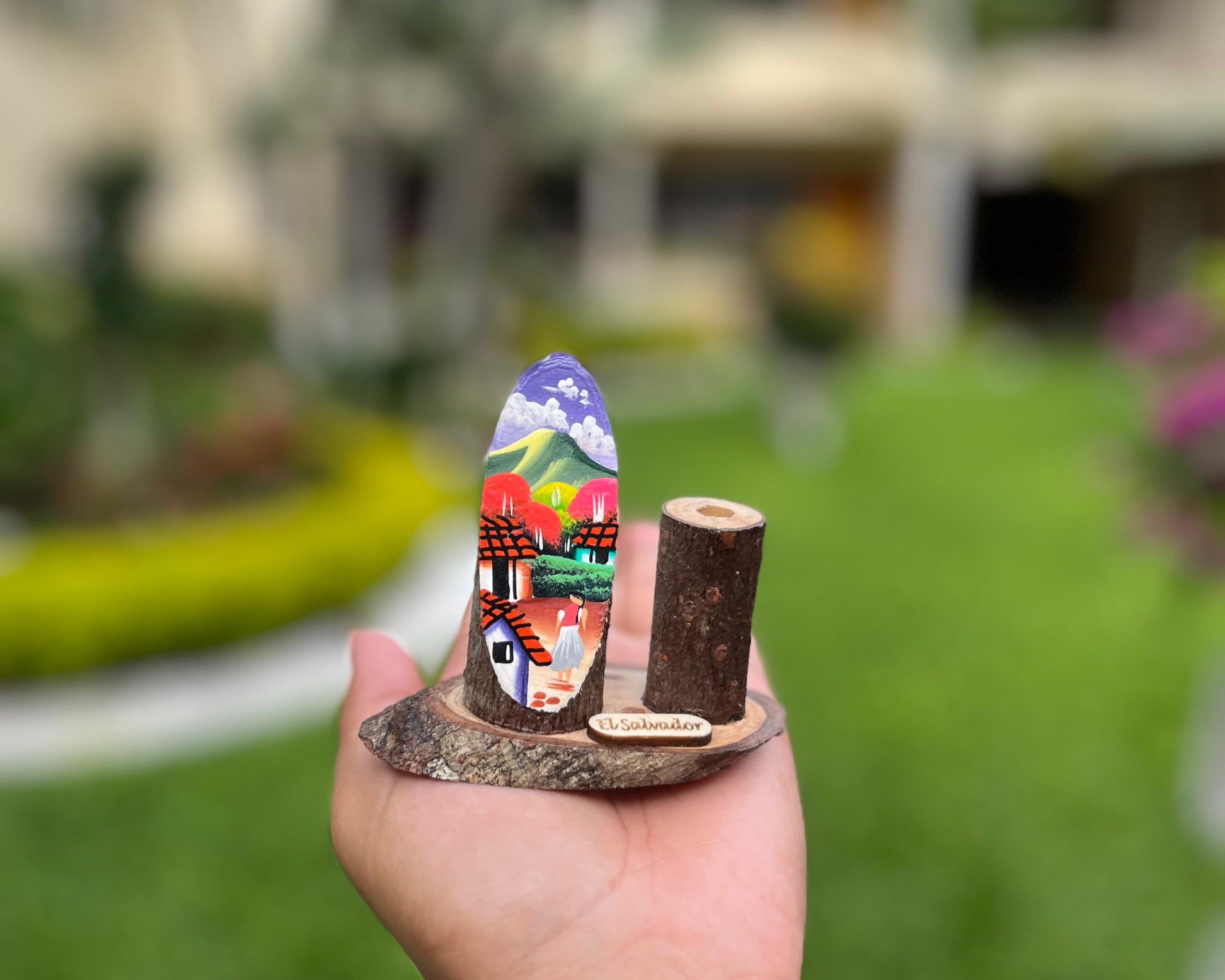 Porta lápiz elaborado con trocito de madera y diseño tipo La Palma